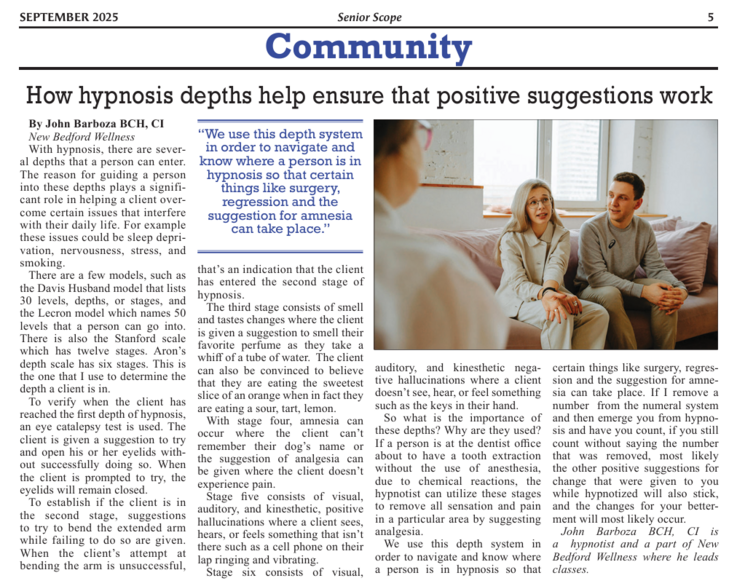 Senior Scope Publication: The Many Uses Of Hypnosis Article 9/2021 (New Bedford, Ma.) Page 5